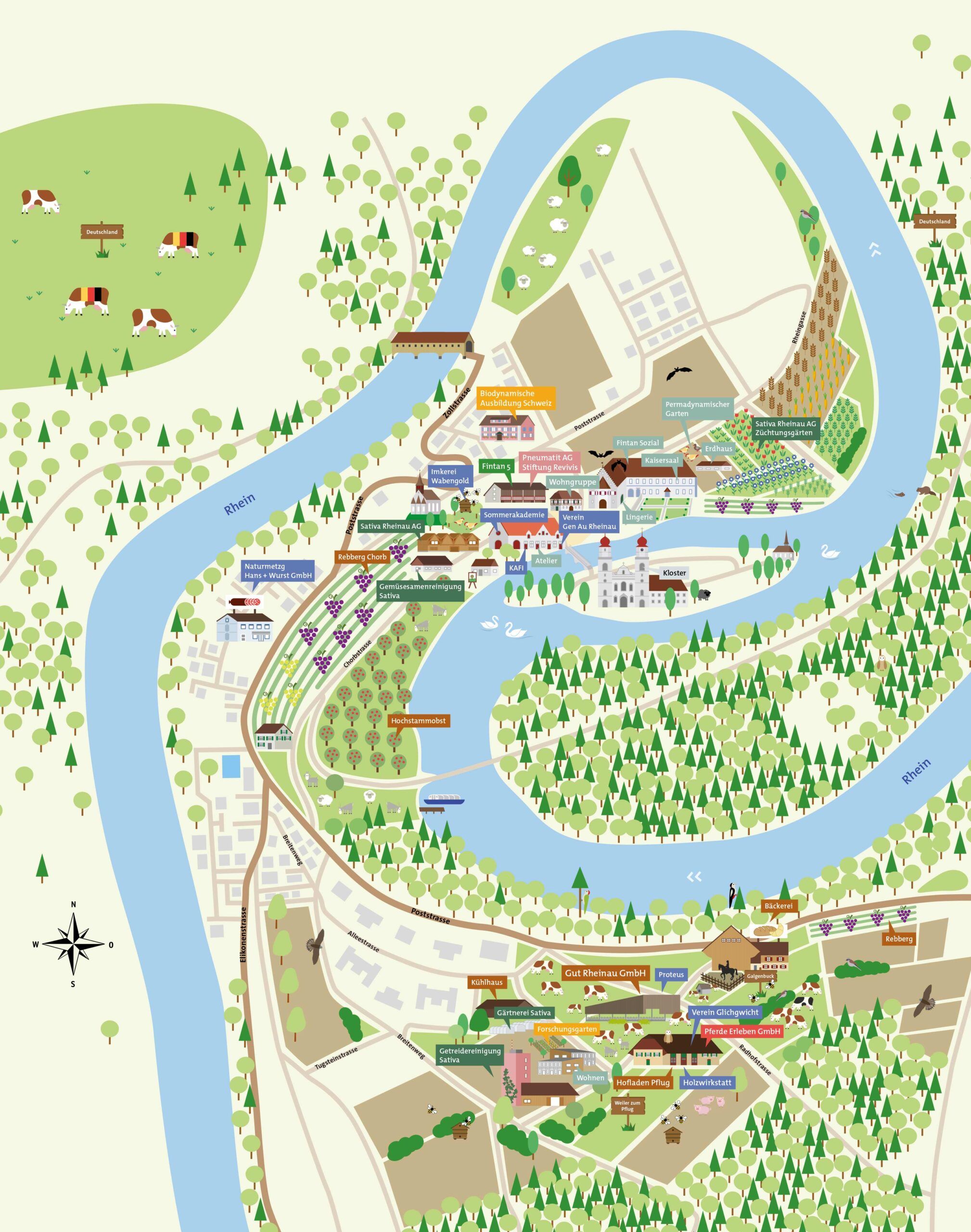 Gut Rheinau liegt inmitten der markanten und idyllischen Rheinschlaufe und wird biologisch-dynamisch geführt.